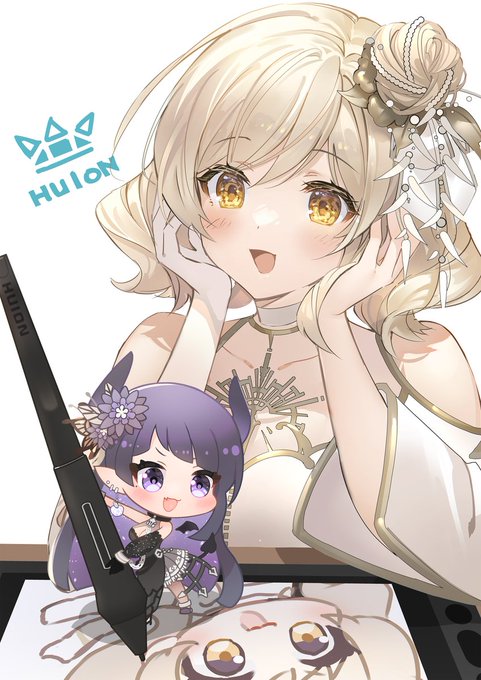 HUION様の液タブ、Kamvas12で コラボイラストを描かせて頂きました~❣ 看板娘のノワ&えくです😈👼 #HUION創作 #HUION