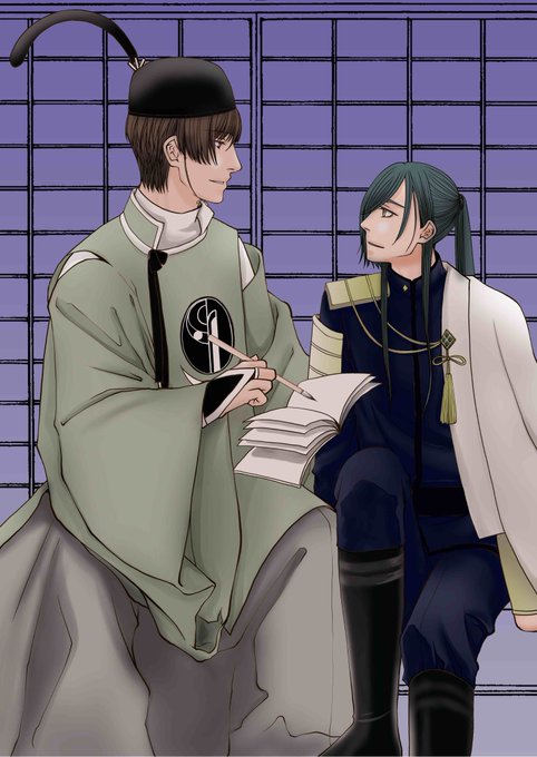 瞳孔細いコンビ落書き。普段使わないソフトで七転八倒しつつ描いてみました