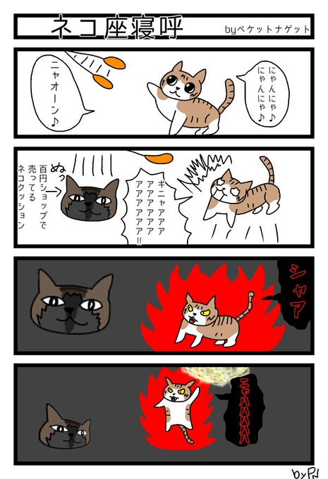 ネコ座寝呼 byペケットナゲット 【四コママンガ】 #ネコ #ネコマンガ #ネコクッション