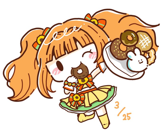 今日食べたオールドファッションかりんとう風がおいしかったので…やよいちゃんにも… ずっとオールドファッションのかりかり部分食べてるみたいだった…!!! #3月25日は高槻やよいの誕生日 #高槻やよい生誕祭2018 #高槻やよい生誕祭