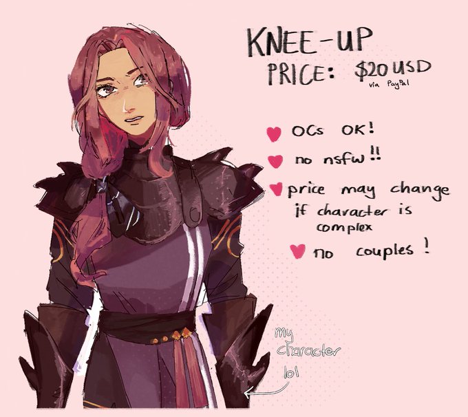 i need technodollars so i'll take 5 slots :) retweets appreciated yall!! this is rushed so if you need any clarification, feel free to leave a reply here or dm me! (knee-up should say waist-up oof)