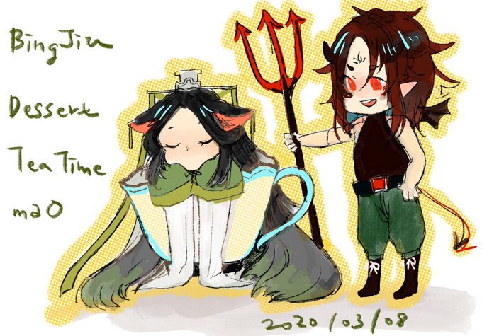畫給朋友們的白髮小九&魔尊冰&高中生充滿奶香的乖巧寶寶九🥰💕