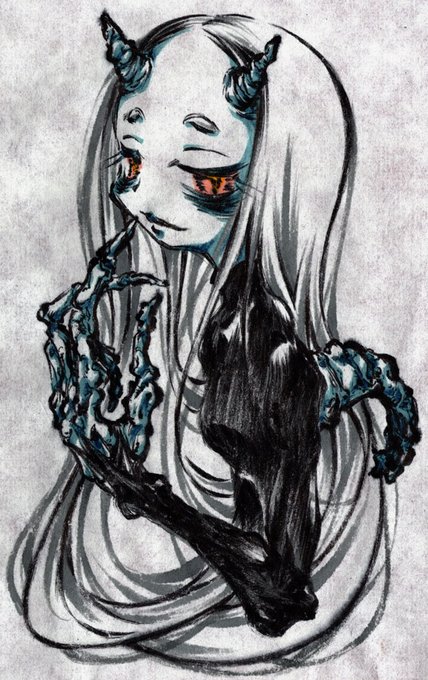 昨日描いた鬼さんですが、少し手を加えてみました。 こういうのってだいたい、やらなきゃよかった…みたいになりますよネ。