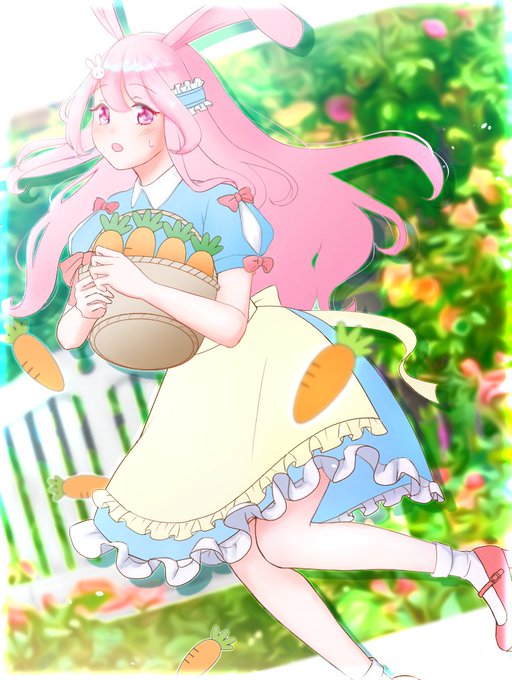 うさぎの女の子、全身描いたけどトリミングでほとんどカットしました〜😅