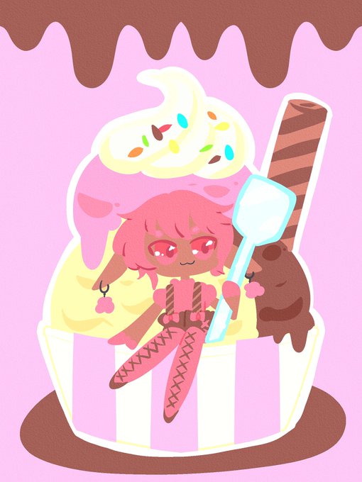 ミルトさん宅(@mirutopkg ) 清瑞君!キャラメルナッツにチョコバナナのアイス、トッピングはホイップもりもりにポッキーとバナナ💛🤎