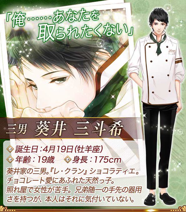 フォロワーさんが話してて気付いたんだけど、愛しのショコラティエってゲームミラプリの絵と似てるよね? 仁さんとかまんまヴィンスだし! この絵師さん超綺麗なスチルだから好きっ!(*ˊૢᵕˋૢ*)