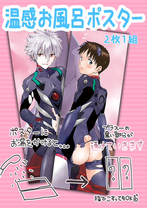 夏コミのおまけのお風呂ポスターです お湯をかけると透ける感温タイプになってます