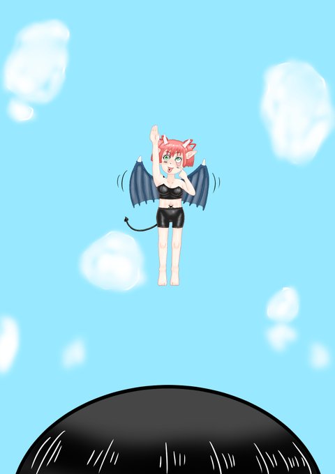 #オリキャラ #サキュパス #あっかんべー 配信中にリクエストいただきました、ありがとうです! お題、要約したものです。 「サキュパスちゃんが空飛んで高いとこから挑発してる感じ」 「尻尾でグルグルにされて絡めとられ、持ち上げられているのを一人称で見てる感じ」