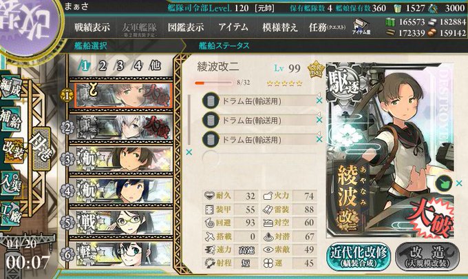 何だよ・・・重編制にしたら3回かよ・・・ ちょうど、改二になるしまぁ良かったか アヘ藏からイケメンにへ~んしん これで寝られる・・・