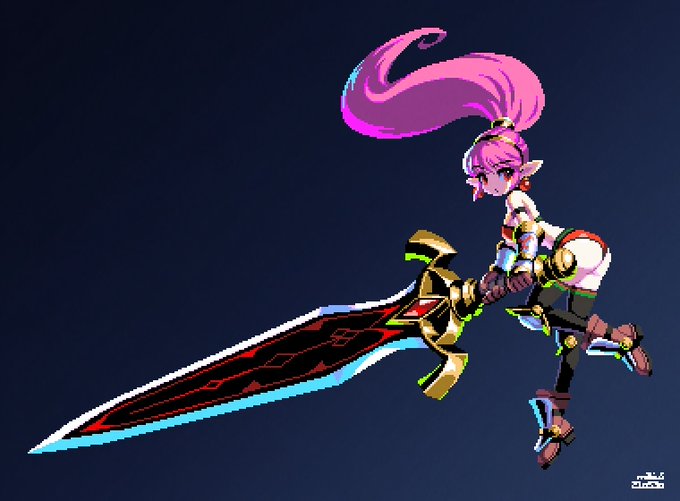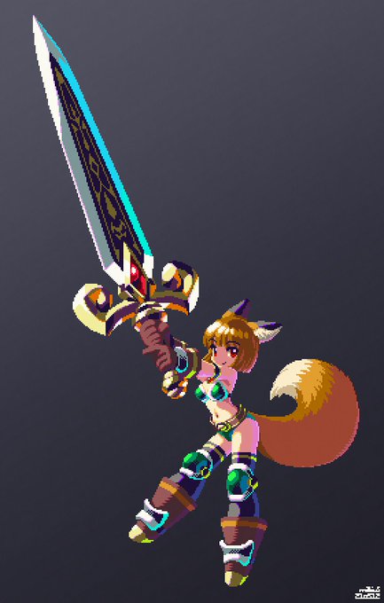 #ドット絵 #pixelart ビキニアーマーの女の子を描きました 今回大剣にかなり時間がかかってしまいました
