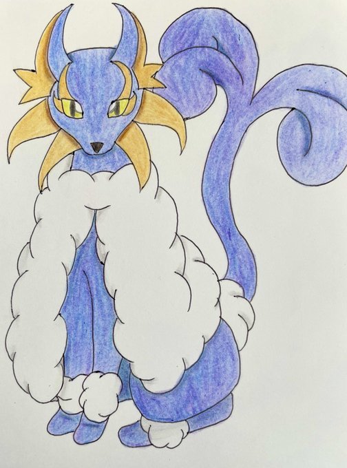 オリポケ第2弾進化系! アイカールの進化系になります。 目の所は模様ではなくまつ毛です。 首の所は顔の保護的な膜…? 名前:アイシクルン 分類:カールポケモン タイプ:こおり #オリポケ #描いてもいいのよ