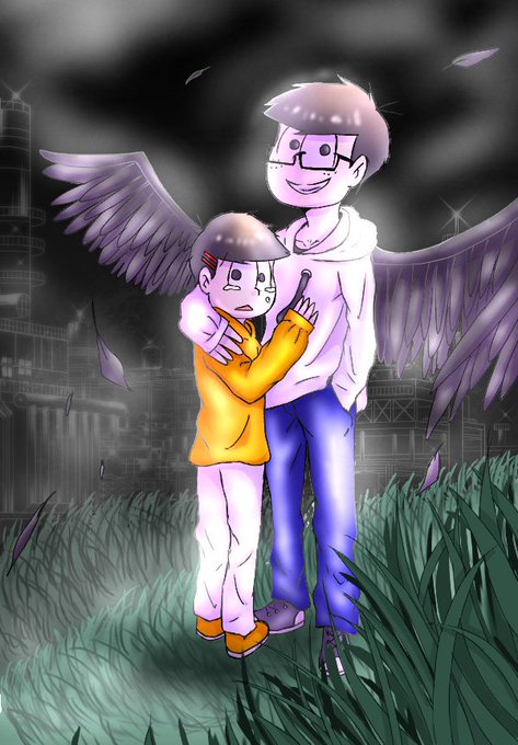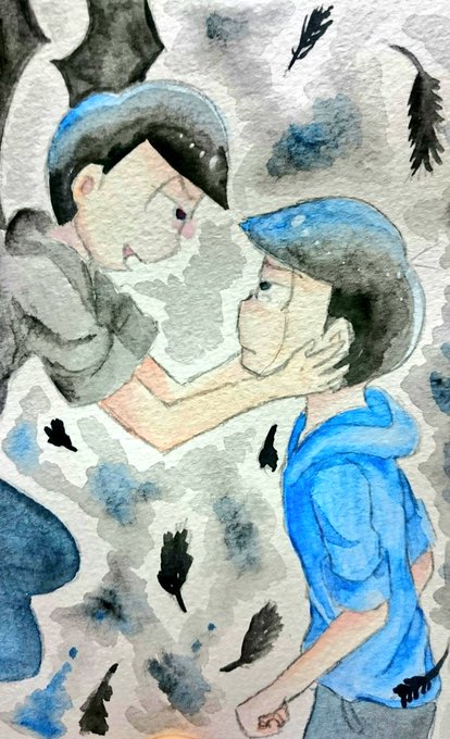 #おそ松さんクラスタと繋がりたい #水彩絵を流して水彩民を増やそう 「疲れた次男」 生きるのに疲れたカラ松は悪魔によって闇落ちしそうになってる。