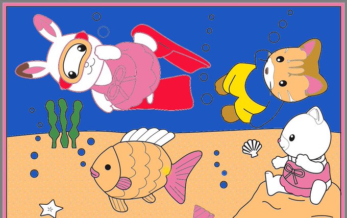 今日の作品☺️ シェーン君は、ラッシュガード派🤣 そして、ペルシャネコちゃんいると背景塗れない😇😇😇笑