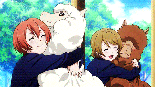凛ちゃんと花陽ちゃんがアルパカに抱きついている(`・ω・ ;)