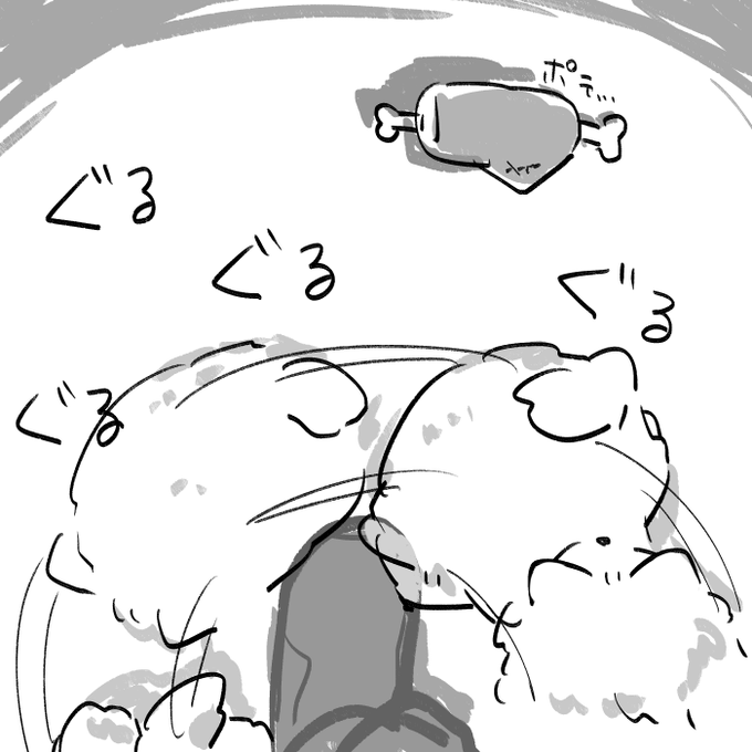 @KAKEIcocmougen 「これ!!!!おーちゃんのにく!!!!あげる!!!!!!!!!食べものあげる日だから!!!焼けてる!!!たべれるよ!!うれしい!?うれしい!??」ピャン!!!!!