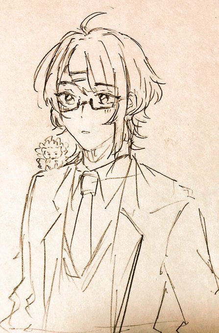 @oshikawa_san あああ可愛い!!!!眼鏡外したら顔変わるタイプのイケメン陰キャや😭😭😭😭 ちなみにうちの子もおいときますすす!!