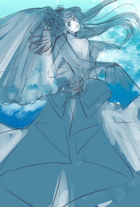 何枚も描いては捨ててきた愛宕のウエディングドレスのラフ 今回のはちょっとましに見える のですすめようかなあ