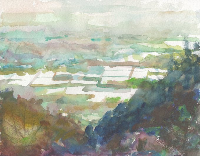 #絵描きさんと繋がりたい #春の創作クラスタフォロー祭り #イラスト好きな人と繋がりたい #みんなで楽しむTwitter展覧会 #水彩画 #透明水彩 #watercolorart 田畑4(調整)