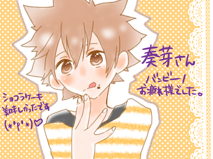 @kn_h3x0 奏芽さん、先日のバンビーノお疲れ様でした(・∀・) スケブ描いていただいて有難うございました!舐めまわすように拝んでおりいます… あとショコラケーキお酒のお供に早速いただきましたwww 大変美味しゅうございました!!