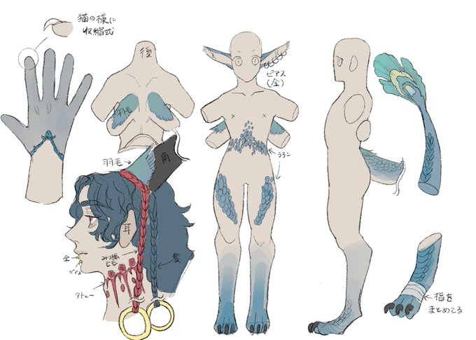 モチーフ 【動物モチーフ・手袋・リング状の装飾・三つ編み(装飾品可)】でキャラデザしました!