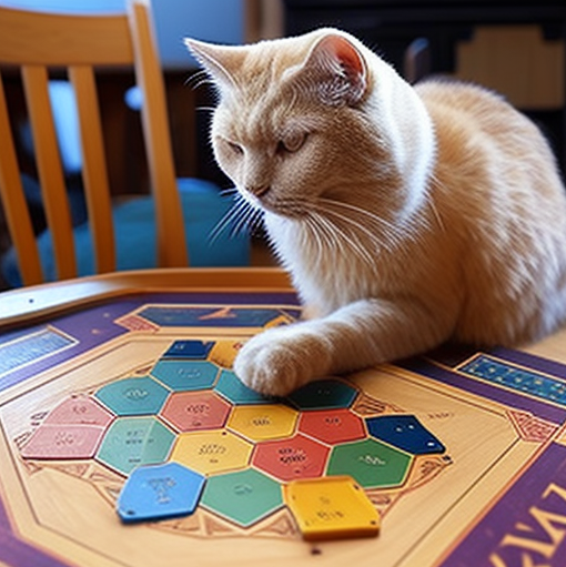 カタンで遊んでいる猫。