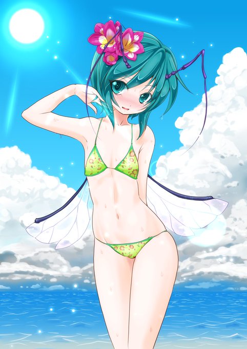 もう少し慣れる為に水着ヤマメで暑中見舞い第二弾。 ちょっと怖い感じのおねーさんが実はカナヅチで照れ臭そうに浮き輪持ってるのって良いと思う。