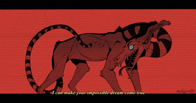 @MonsterPageant Hey! I love drawing sharp teethed dark creatures, demons and possessions. Some of my OCs are in these theme uwu