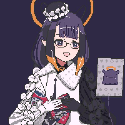 Fancy Tako, pixel version. I love how fluffy and bouncy this new outfit is! Trying to do the amazing fabric on the bow justice is tough, but I love the burst of color it adds.