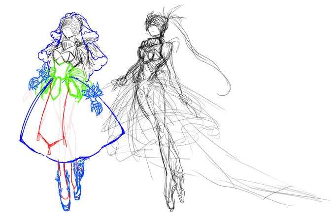 完成絵と影用乗算レイヤ+線画のやつ 影を灰青と錆色で塗るのがマイブーム