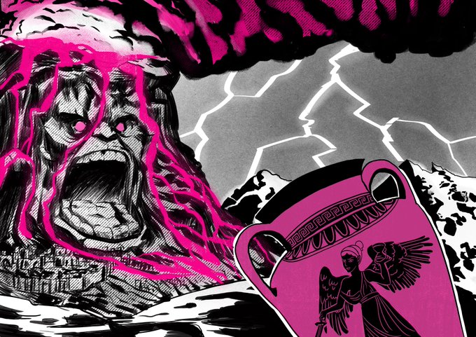 4/4 et voici les dessins que j'ai fait, en grand, bien clean. La dernière a donc été fait avec mon amie, j'ai fait le volcan et la ville et elle l'amphore et les montagnes