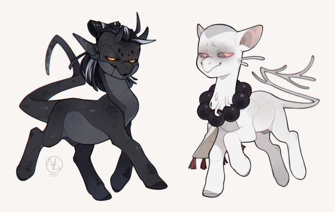 Our OC, Seishu (white one) and Lokk (black one) like ponies lol :D