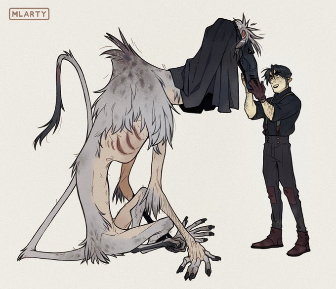 we have a tradition of giving our human ocs something like "totem animals" SO Shiro is a tiny bat and and Mamoru, wow, is a komodo dragon. big hungry lizard loves meat RRREEEEEEE >:U