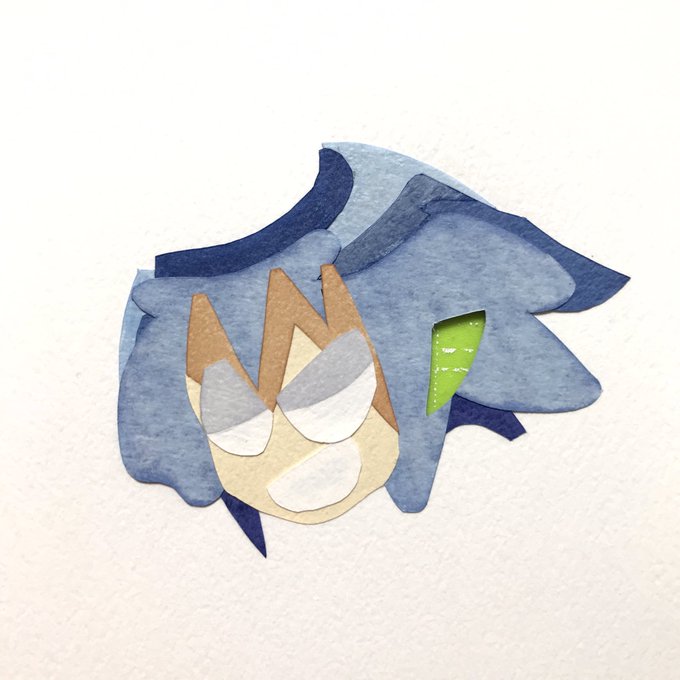 切り絵 進捗 4 パーツ分割切り、着色、下貼りと工程多いのでアホ毛だけで4時間近くかかってる🫠 とりあえず髪の毛は終わり!