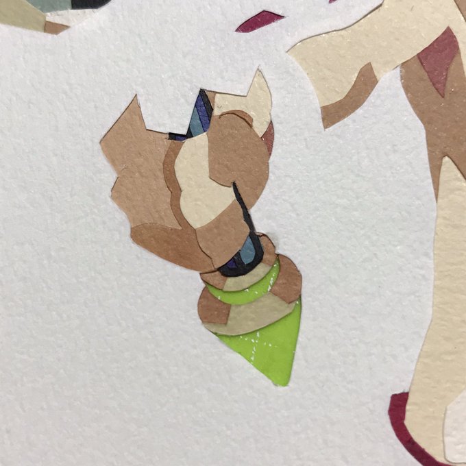 切り絵進捗 3 作業の順番に悩み過ぎて手間取った…耳まで出来なかった悲しみ🥺
