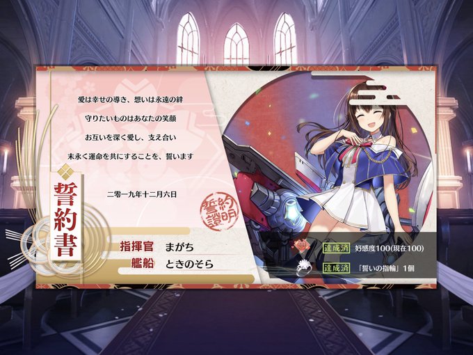 そらちゃんとケッコンできたー(๑╹ᆺ╹)✨ これからもよろしくね❗️ #アズールレーン #ホロライブ #ときのそら