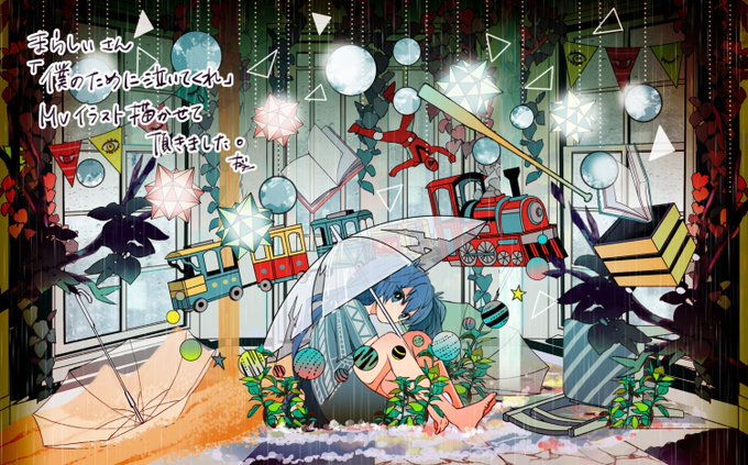 まらしぃさん(@marasy8)の新曲『僕のために泣いてくれ』MVイラストを描かせていただきました☔️