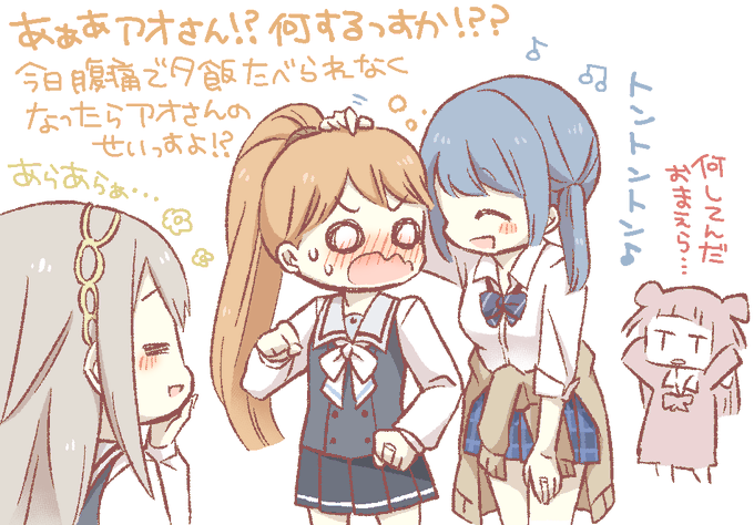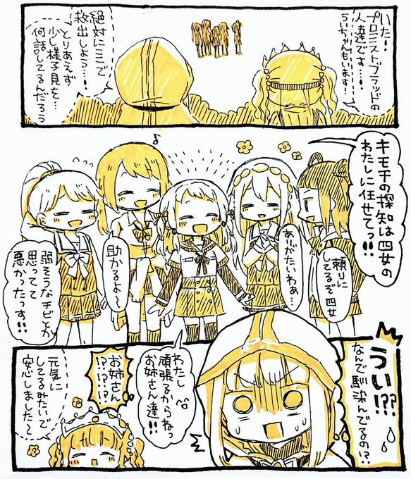 #マギレコ メインストーリー最新話らくがき。ひかアオが拠点で公開いちゃいちゃしてて息絶えた。我が人生に悔いなし…😌🧡💙✨