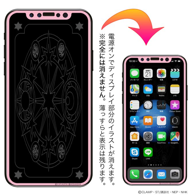 バックライトOFFでキャラが現れるiPhone用保護ガラス