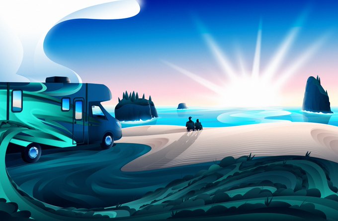 A relaxing full spread Illustration in the latest issue of @SeattleMet for a story about renting an RV and exploring the Olympic Peninsula #editorialillustration #seattle #pnw