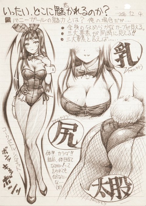 #まぐ太ノート 12ページ「いったいどこに惹かれるのか?」 ただでさえスタイルの良い人を選出して 水着のようなスーツで両足・両肩が露わになり 首や手首の襟の存在がフォーマルかつむしろ露出を強調する コスチュームを着せたら・・・ いやでも「乳・尻・太股」が目に飛び込んで来ますよね