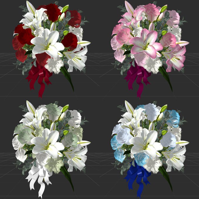 出来栄えやセンスはともかくとして、花の3Dモデル買ってblenderでブーケ作るのが楽しい💐