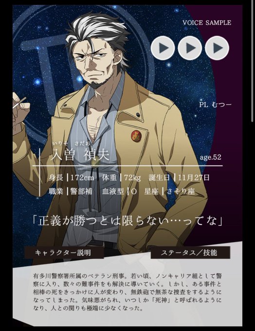 縢探偵事務所の探偵。助手と2人で切り盛りするも、現在行方不明のため1人で行っている。数学が好きで、青空が嫌い。ずっとカーテン閉めてる。