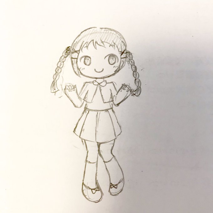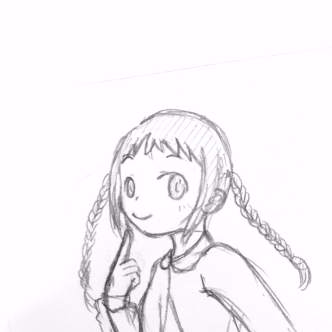 @umiharakekki あんまないんですよね……だいたいこんな感じ…? (前髪眉上、ツインテ位置で細い三つ編み。服装は別に固定ではない…)