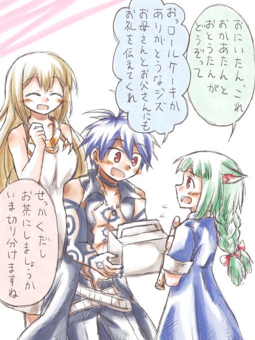 メギド72のジズちゃんとモンモンとアイムちゃん いいから幸せになるんだよォ!!ロールケーキをたんとお食べ!