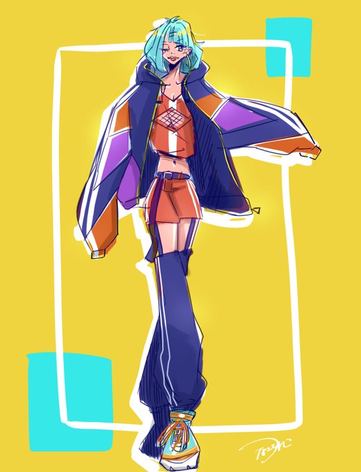 昨晩のらくがき 原宿のJKが着てるようなぶかぶかのカラフルなブルゾンいいよね