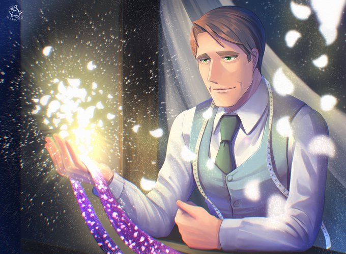 #いいおっさんの日 #いいおじさんの日 #イラスト #illustration うちのいいおじさん 仕立て屋アルバートさん。 ファンタジーな能力持ってます。🐟️👍