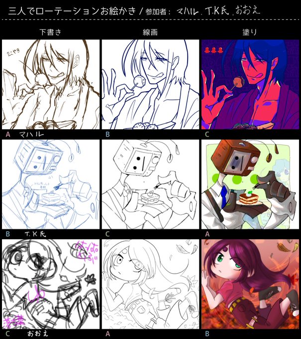 仲のいい友人たちと一緒に自キャラでローテーションお絵描きをやりました!!自分はA担当です!めっちゃ楽しかったし、何よりみんなが神すぎて私が塵になりそう....🤦♂️リプにID載せているので気になった人は見てみてね!!
