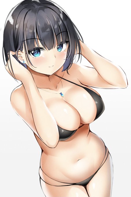 ボブショートの水着のお姉さん絵