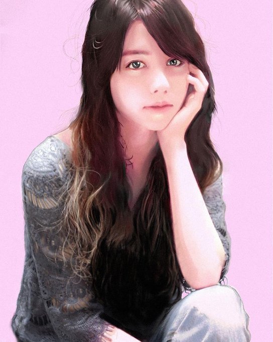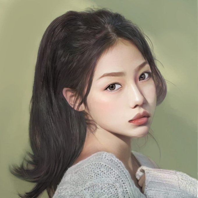 細かい目のニットを描く。結構手数。 #portrait #portraitart #drawing #illustration #イラスト #beautifulgirl #longhair #blackhair #model #bouquet #美人画 #イラスト好きな人と繋がりたい