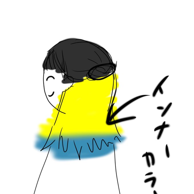 推しがライブの時こういうカラーやってたから私もやりたいっていうの絵にしてみた(画力がないのはデフォ)推し様は全頭だったぽいけどさすがに厳しいからインナーにする🥺 でも、今年入って3回はブリーチしてるんだよな、やめた方がよきかな…これから成人式でまた染め直す予定あるし…助言くださいッ!